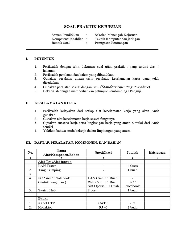 1. Periksalah dengan teliti dokumen soal ujian praktik , yang terdiri dari 4