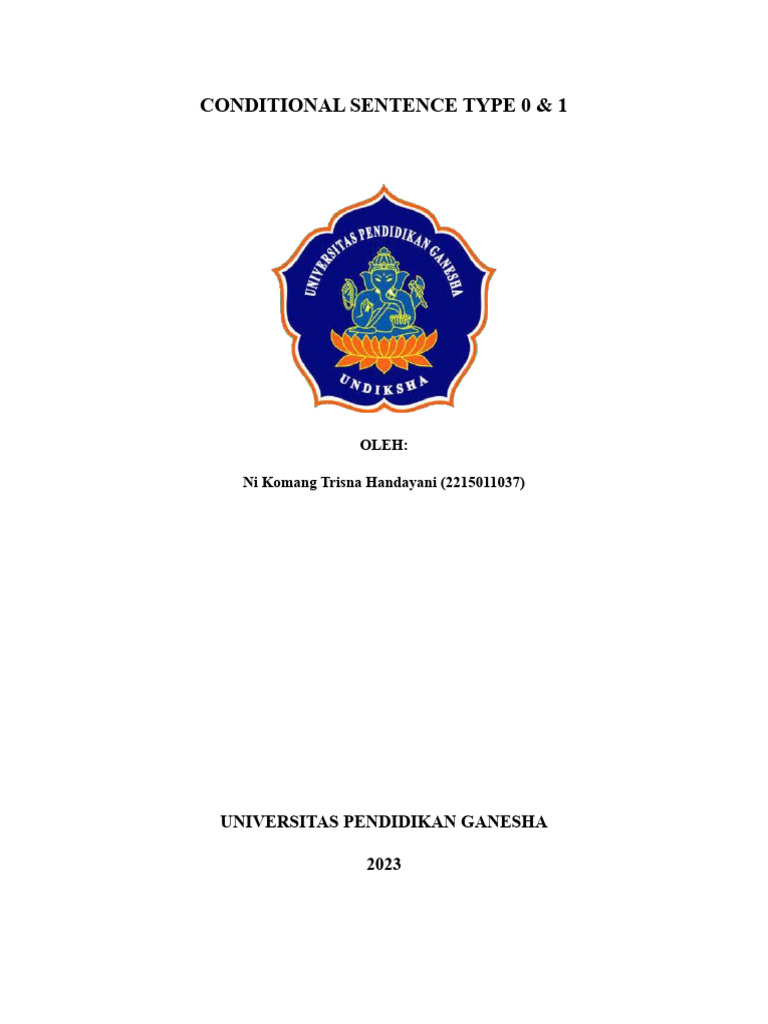 ini berjudul “Laporan Conditional Sentence Type 0 dan 1”.