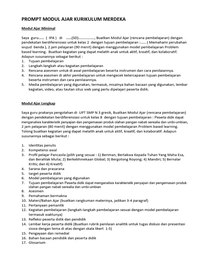 PROMPT MODUL AJAR KURIKULUM MERDEKA
