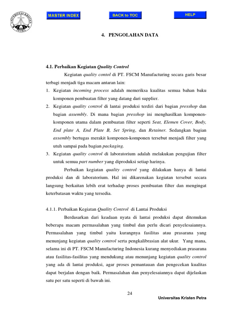 line untuk lebih mudah dibaca. Agar lebih jelasnya, contoh quality contol