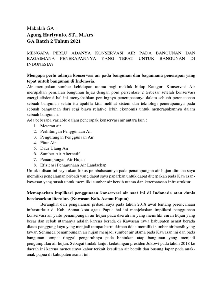 Memaparkan implikasi penggunaan konservasi air saat ini di Indonesia atau dunia