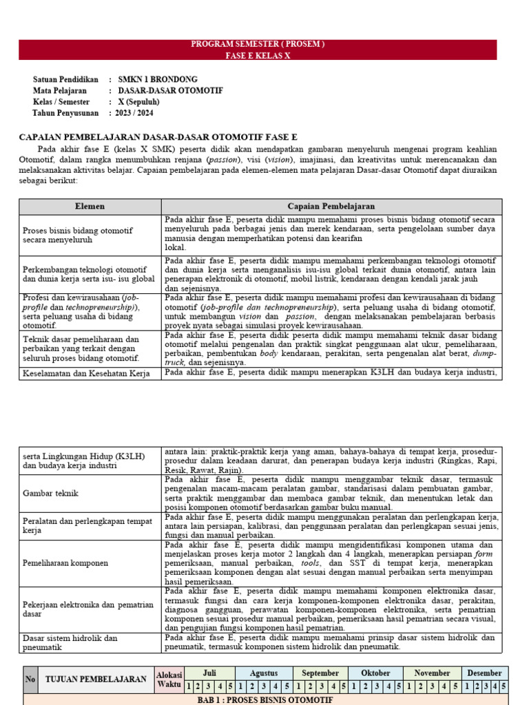 CAPAIAN PEMBELAJARAN DASAR-DASAR OTOMOTIF FASE E