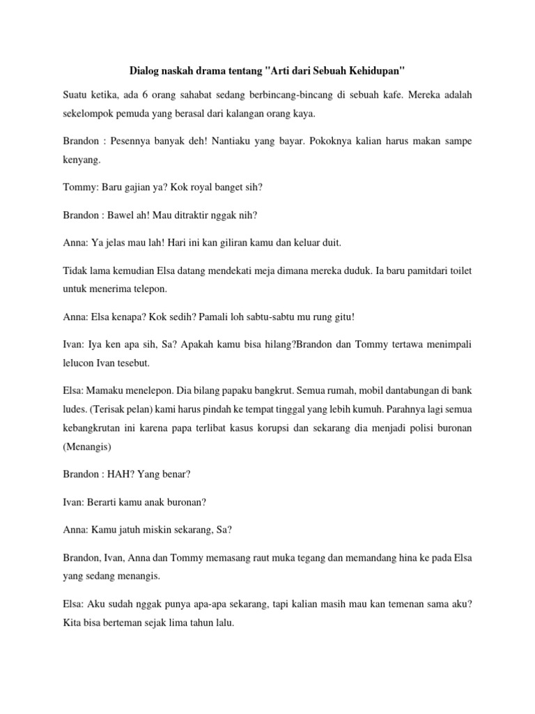 Dialog naskah drama tentang "Arti dari Sebuah Kehidupan"