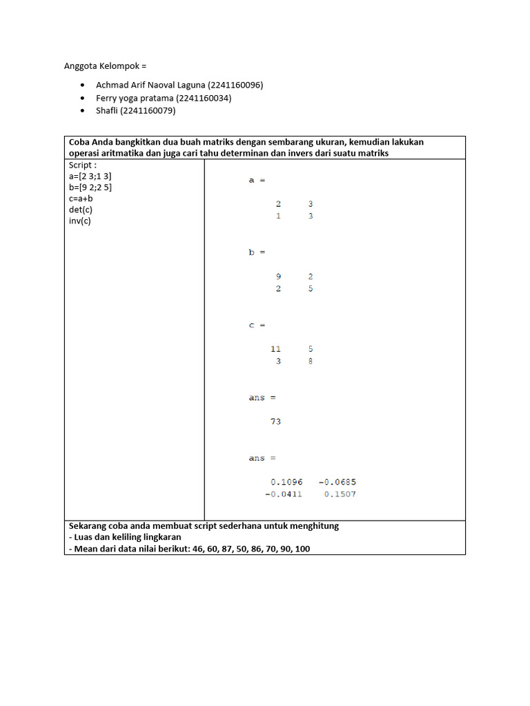 operasi aritmatika dan juga cari tahu determinan dan invers dari suatu matriks