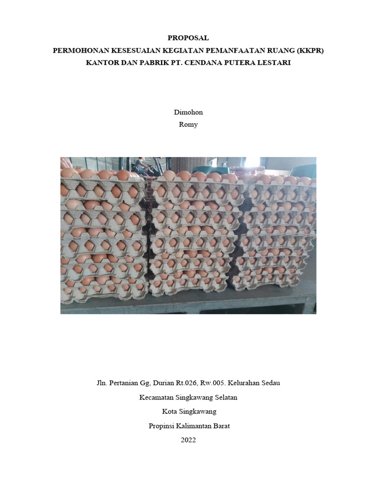 Demikian proposal pabrik PT. Cendana Putera Lestari ini saya buat sebagai kelengkapan