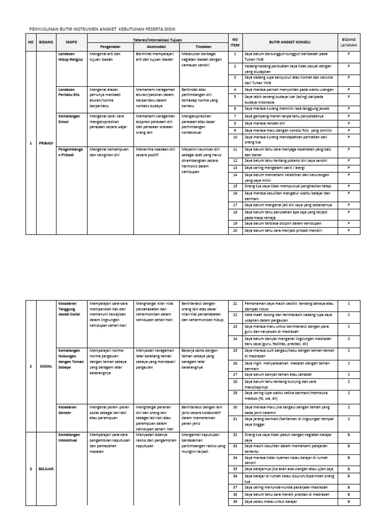 PENYUSUNAN BUTIR INSTRUMEN ANGKET KEBUTUHAN PESERTA DIDIK