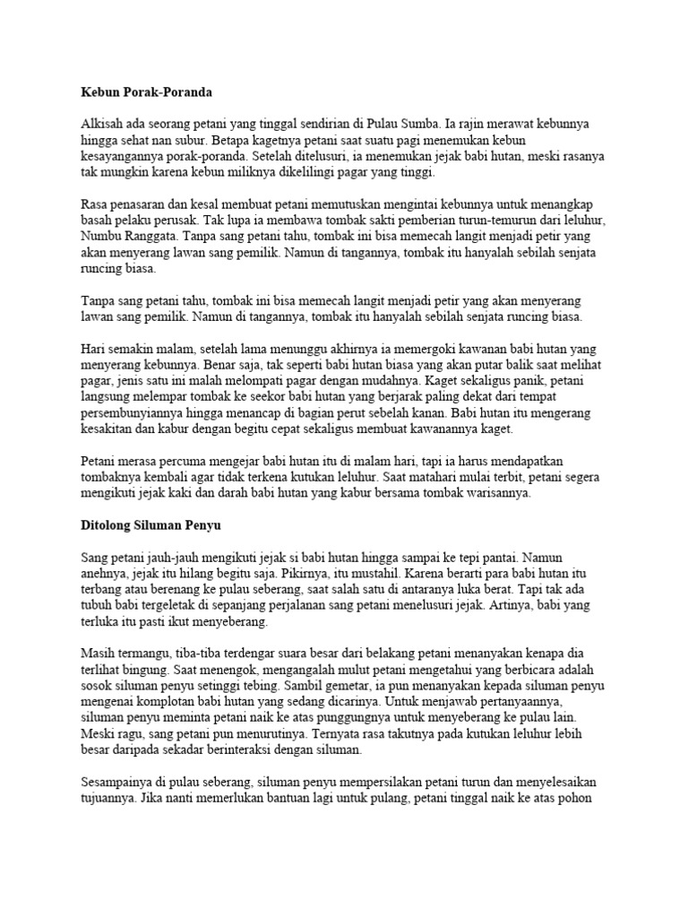 Alkisah ada seorang petani yang tinggal sendirian di Pulau Sumba. Ia rajin merawat kebunnya