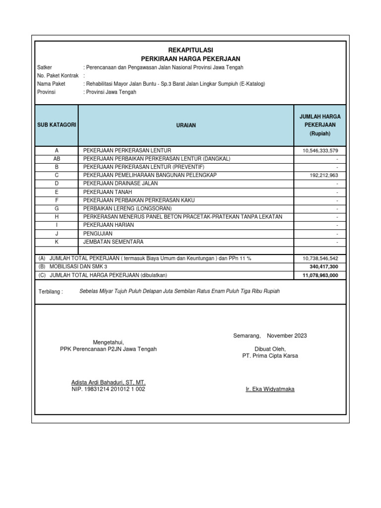 (C) JUMLAH TOTAL HARGA PEKERJAAN (dibulatkan) 11,078,963,000