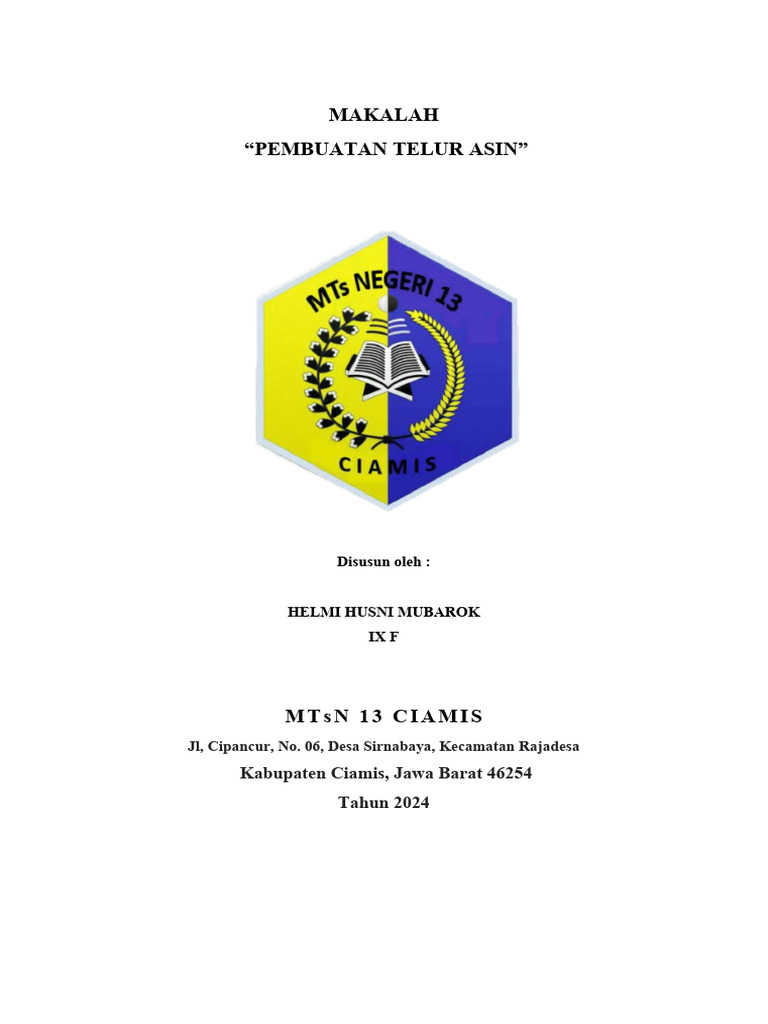 Makalah ini akan merumuskan 2 (dua) permasalahan tentang telur asin.
