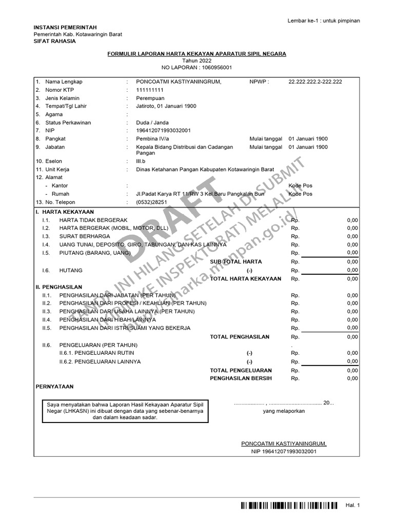 FORMULIR LAPORAN HARTA KEKAYAN APARATUR SIPIL NEGARA