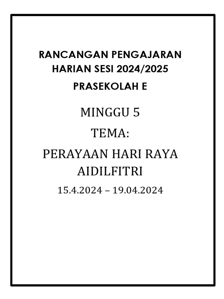 RANCANGAN PENGAJARAN HARIAN PRASEKOLAH