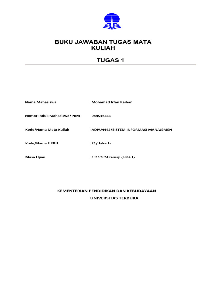 Kode/Nama Mata Kuliah : ADPU4442/SISTEM INFORMASI MANAJEMEN