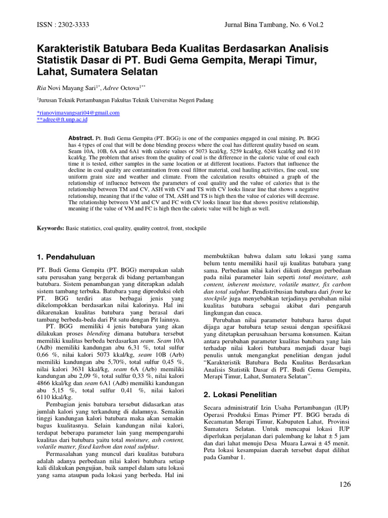kualitas batubara adalah terdapat kontaminasi dari dan Stockpile di Tambang Air Laya PT Bukit