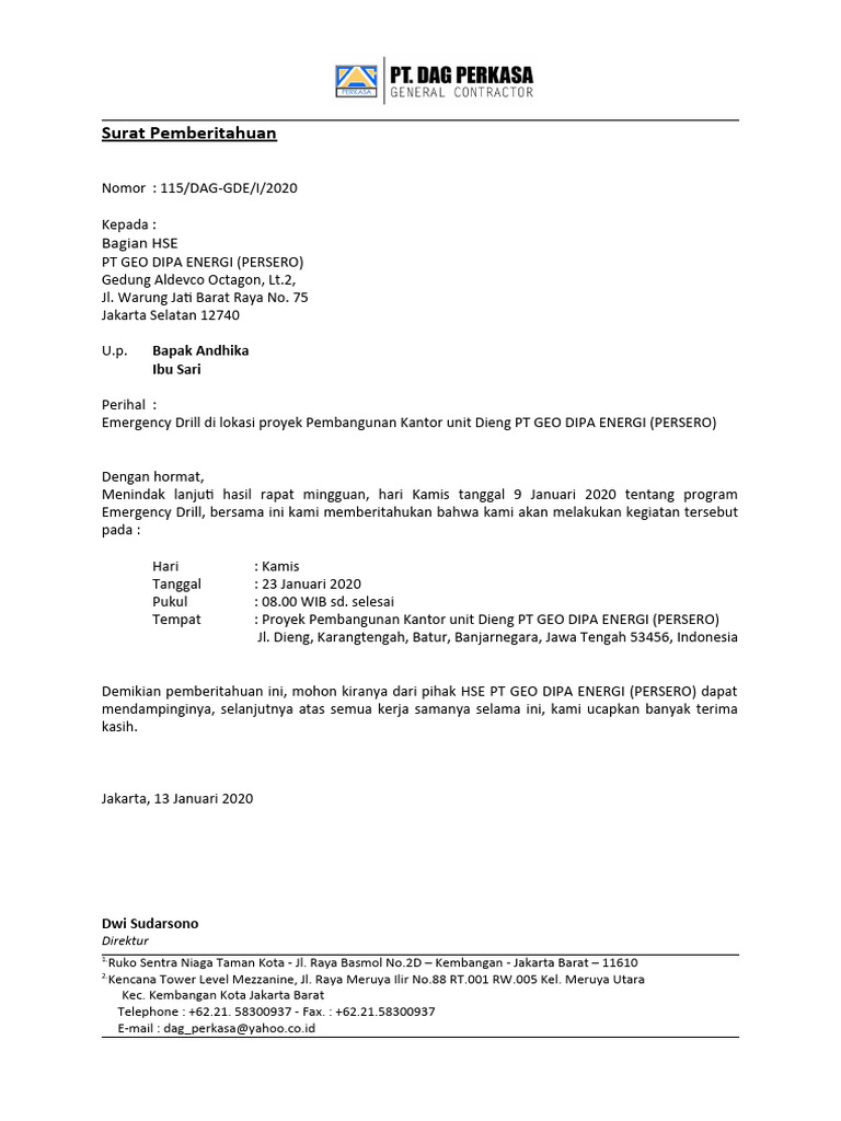 Demikian pemberitahuan ini, mohon kiranya dari pihak HSE PT GEO DIPA ENERGI (PERSERO) dapat