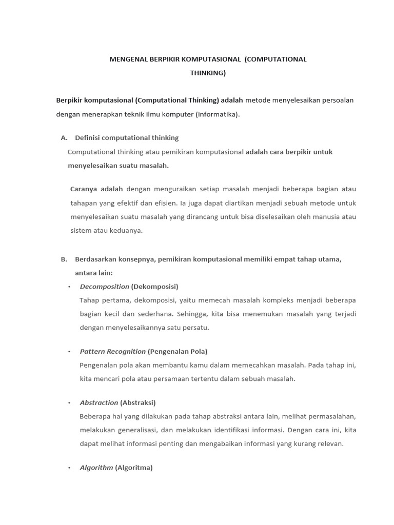 Berpikir komputasional (Computational Thinking) adalah metode menyelesaikan persoalan