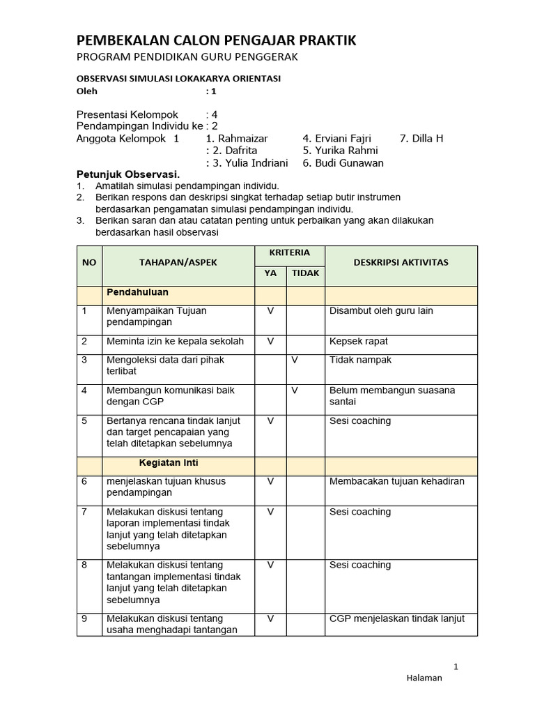 OBSERVASI SIMULASI LOKAKARYA ORIENTASI