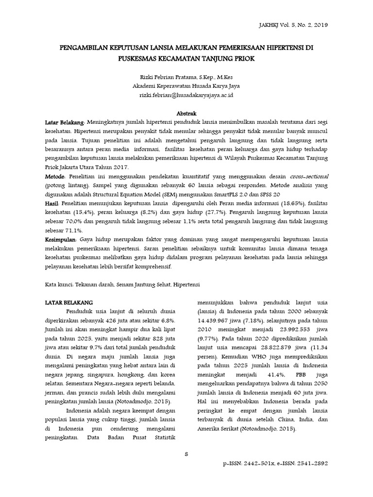 merawat lansia yang menderita hipertensi. selain serta total pengaruh langsung dan tidak langusng