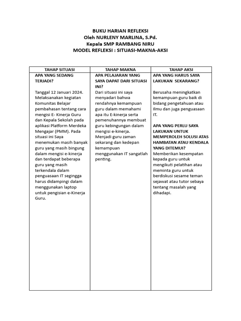MODEL REFLEKSI : SITUASI-MAKNA-AKSI