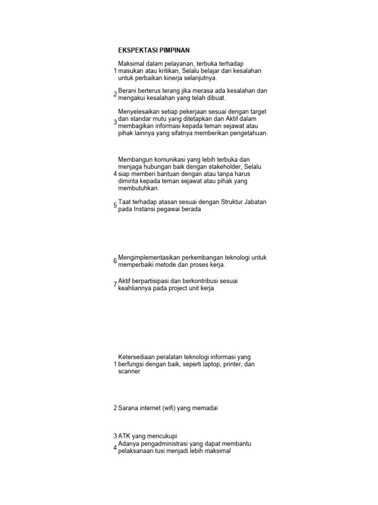 1 Ekspektasi Khusus Pimpinan:
