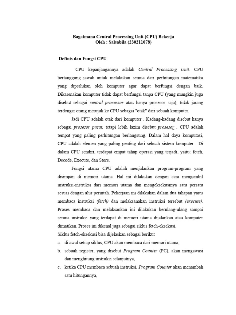 CPU kepanjangannya adalah Central Processing Unit. CPU