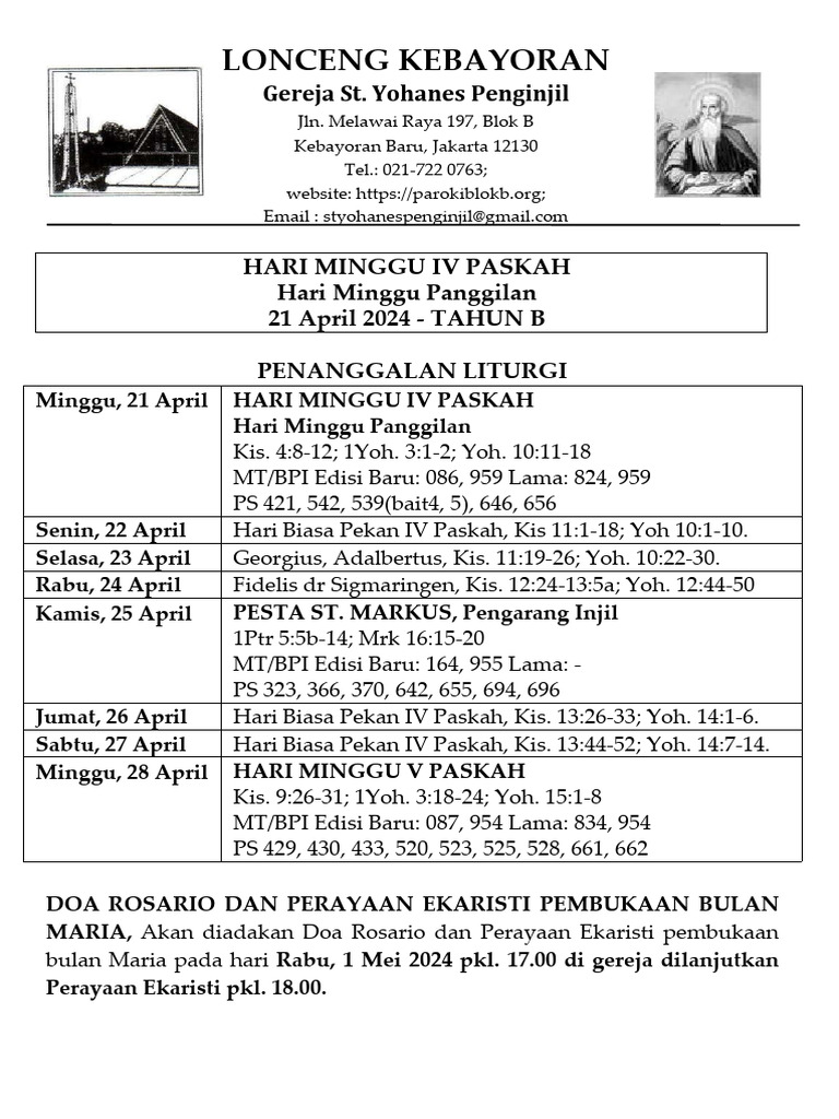 Minggu, 21 April HARI MINGGU IV PASKAH
