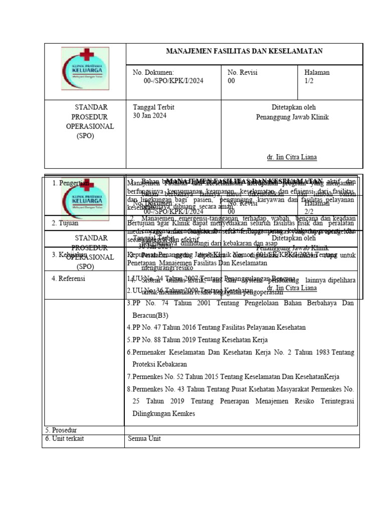 PROSEDUR 30 Jan 2024 Penanggung Jawab Klinik