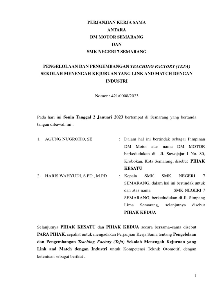 1. Dalam pelaksanaan kerjasama ini, SMK Negeri 7 Semarang membayar tenaga