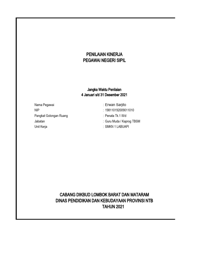 Penilaian Kinerja PNS Erwan Sarjito 2021