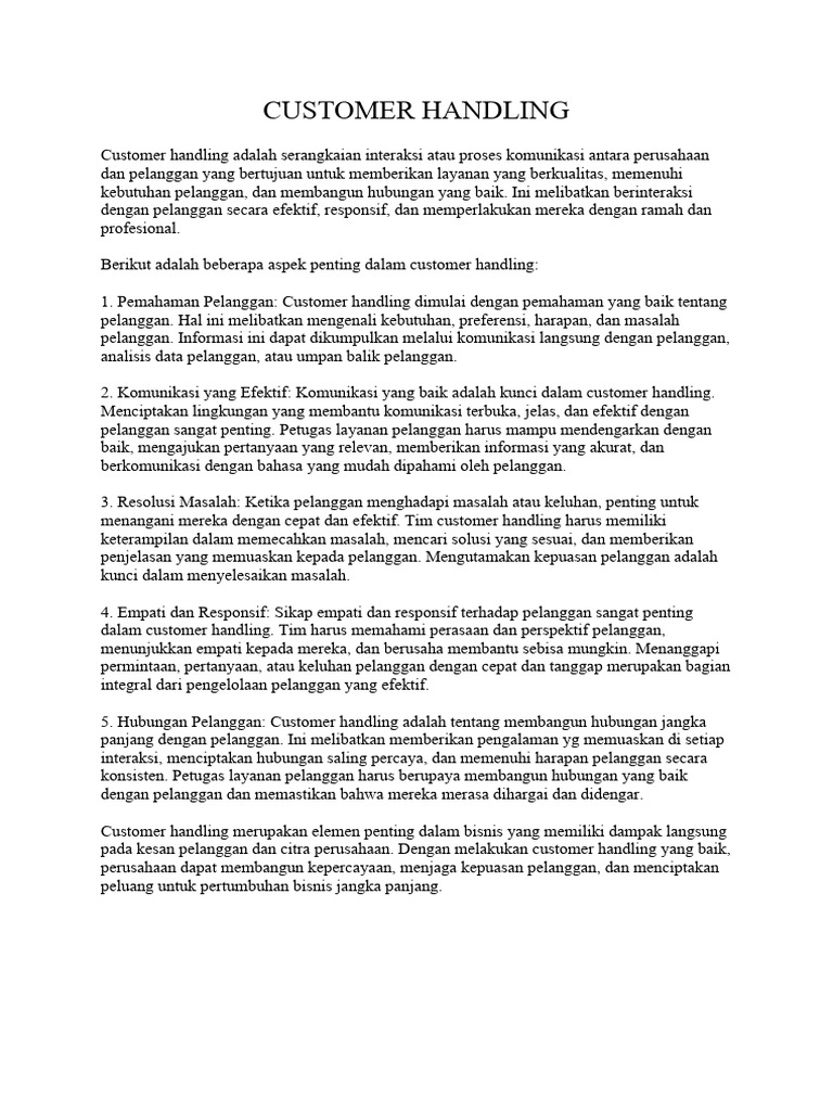 Customer handling merupakan elemen penting dalam bisnis yang memiliki dampak langsung