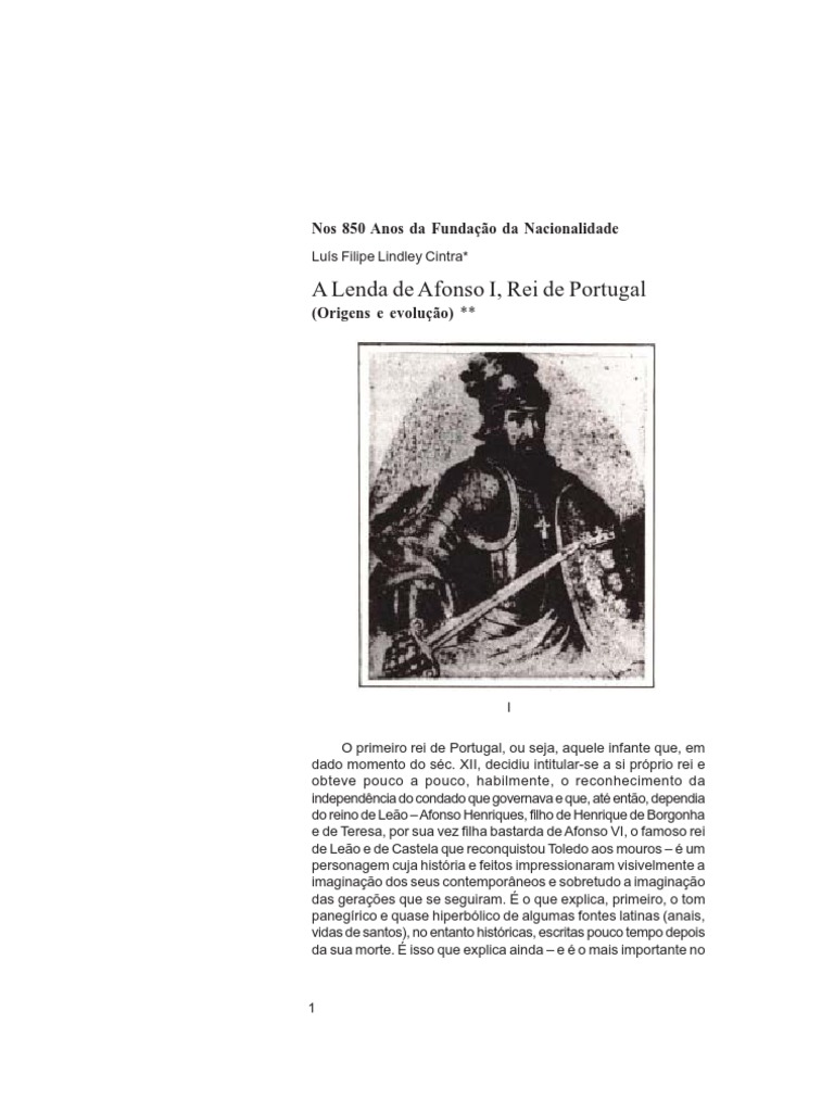 Cintra, L. F. P. — A Lenda de Afonso I, Rei de Portugal. Revista ICALP,