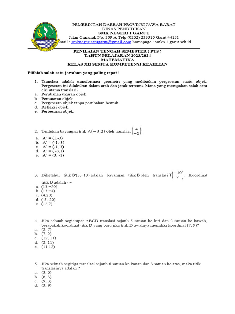 1. Translasi adalah transformasi geometri yang melibatkan pergeseran suatu objek.