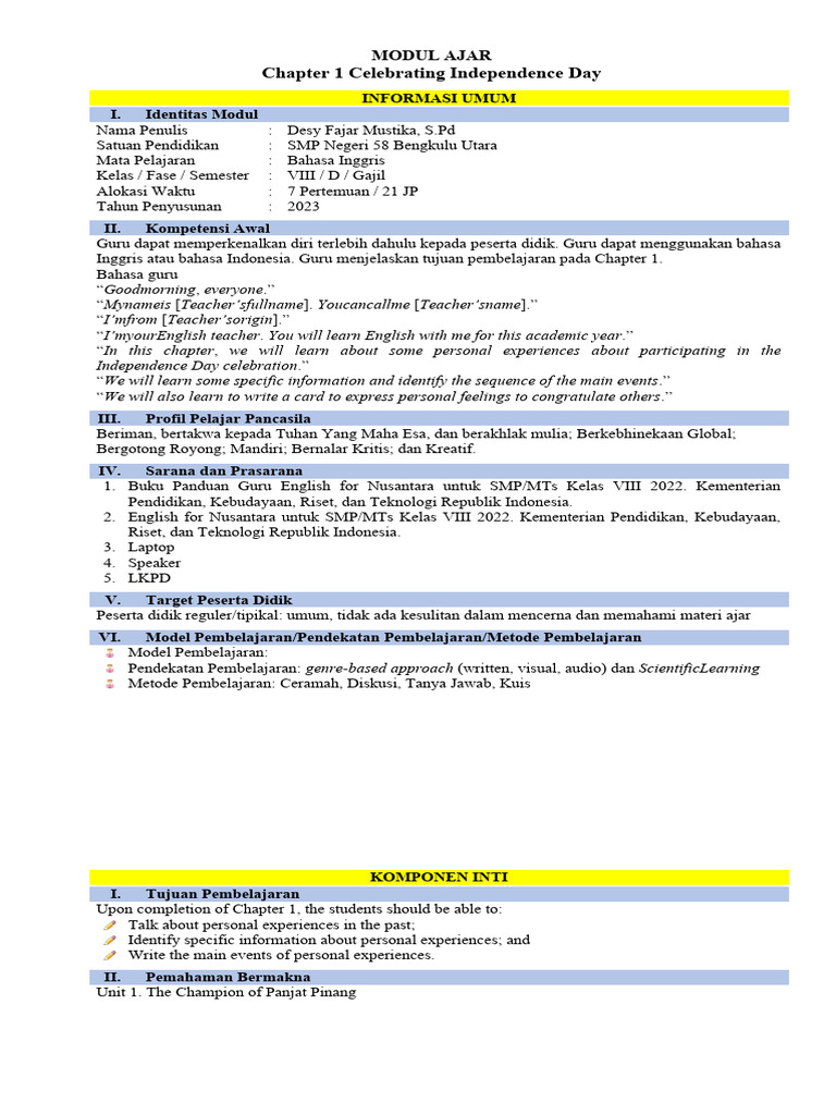 Nama Penulis : Desy Fajar Mustika, S.Pd