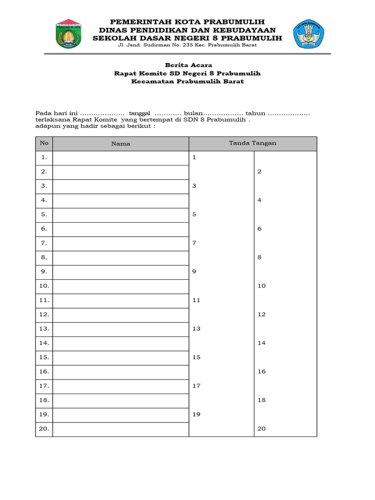 DAFTAR HADIR PESERTA RAPAT KOMITE