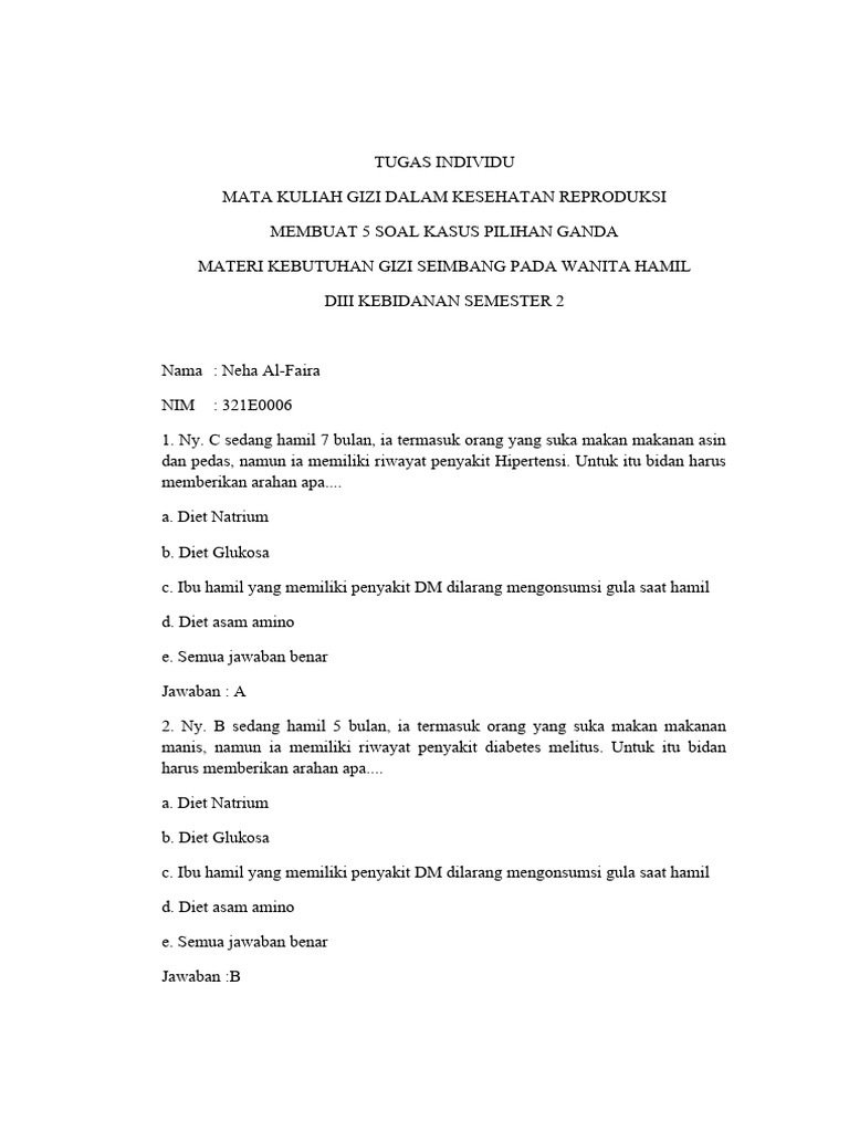 1. Ny. C sedang hamil 7 bulan, ia termasuk orang yang suka makan makanan asin