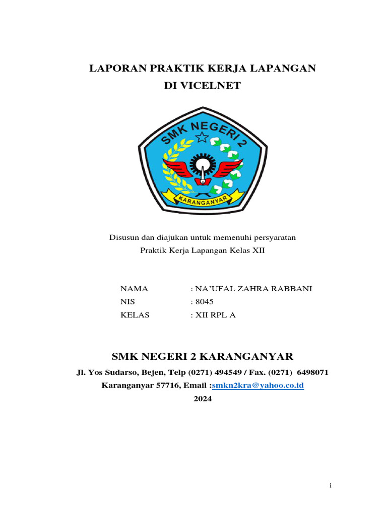 Praktik Kerja Lapangan di Vicelnet. Laporan ini disusun dengan tujuan sebagai