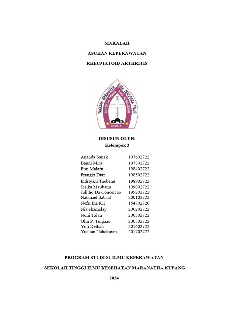 dapat menyelesaikan tugas makalah Asuhan Keperawatan “Rheumatoid Arthritis”.