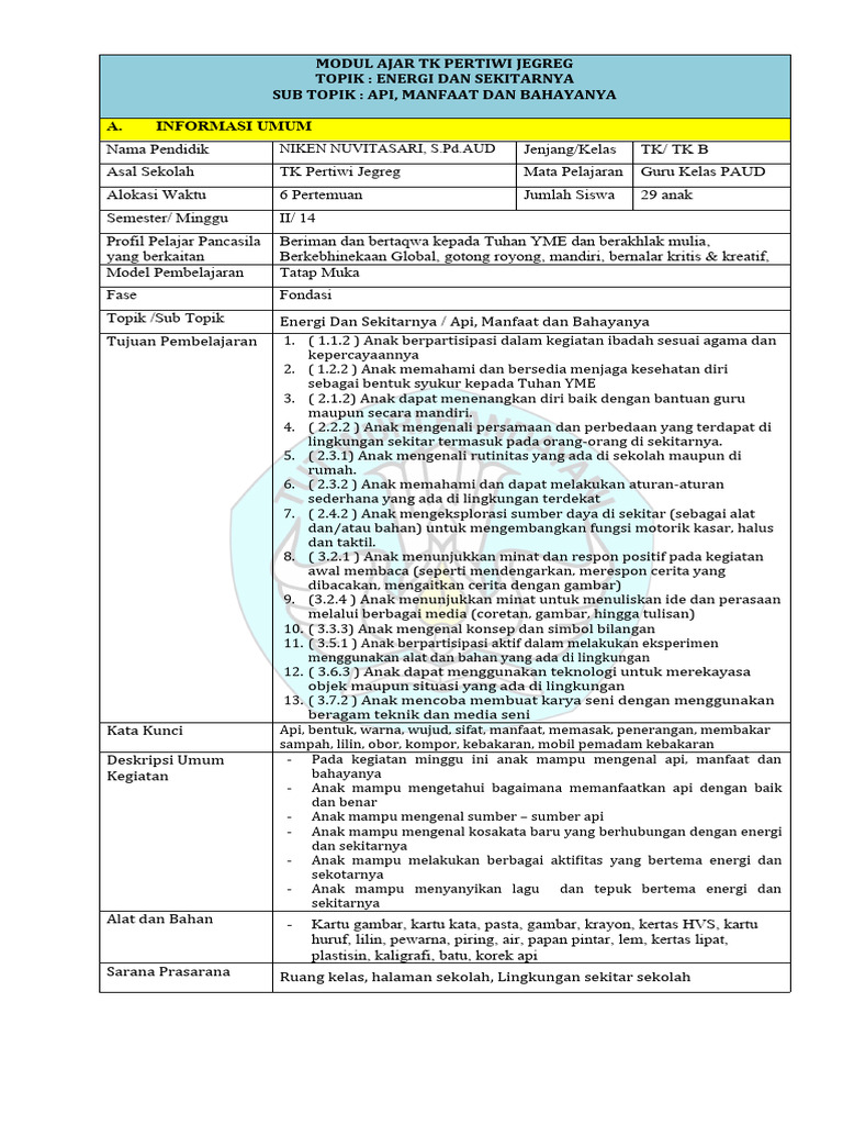 MODUL AJAR TK PERTIWI JEGREG