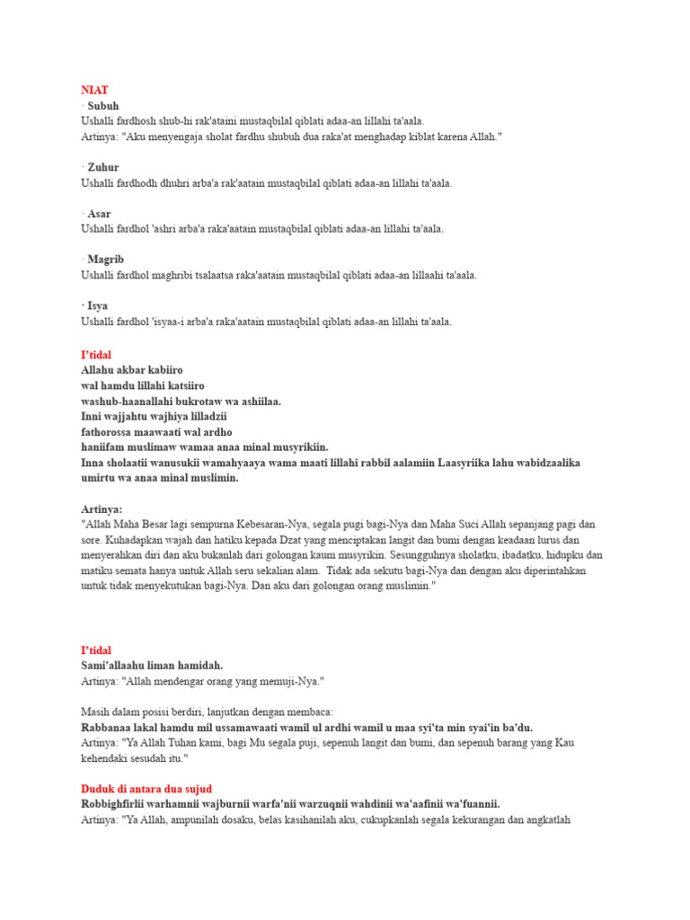 Artinya: "Aku menyengaja sholat fardhu shubuh dua raka'at menghadap kiblat karena Allah."