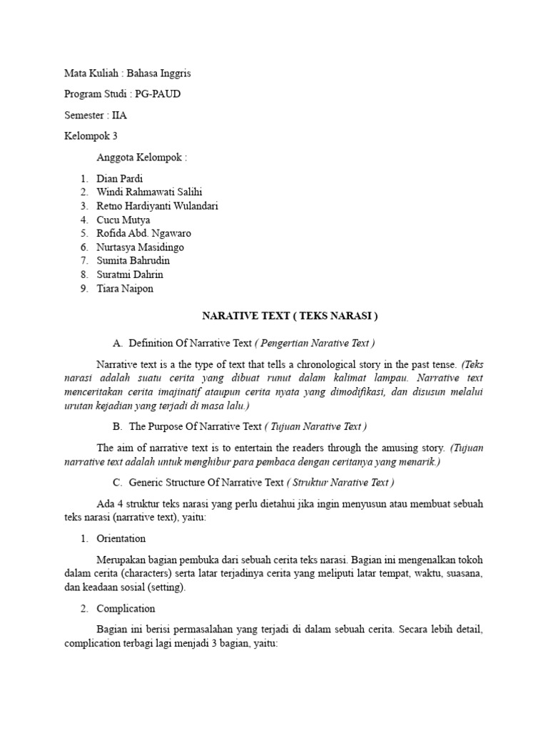 C. Generic Structure Of Narrative Text ( Struktur Narative Text )