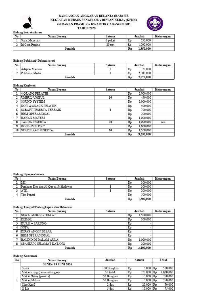 5 Bidang Publikasi/ Dokumentasi Rp 2,070,000