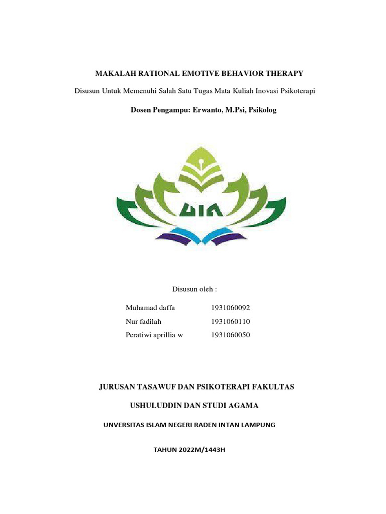 MAKALAH RATIONAL EMOTIVE BEHAVIOR THERAPY