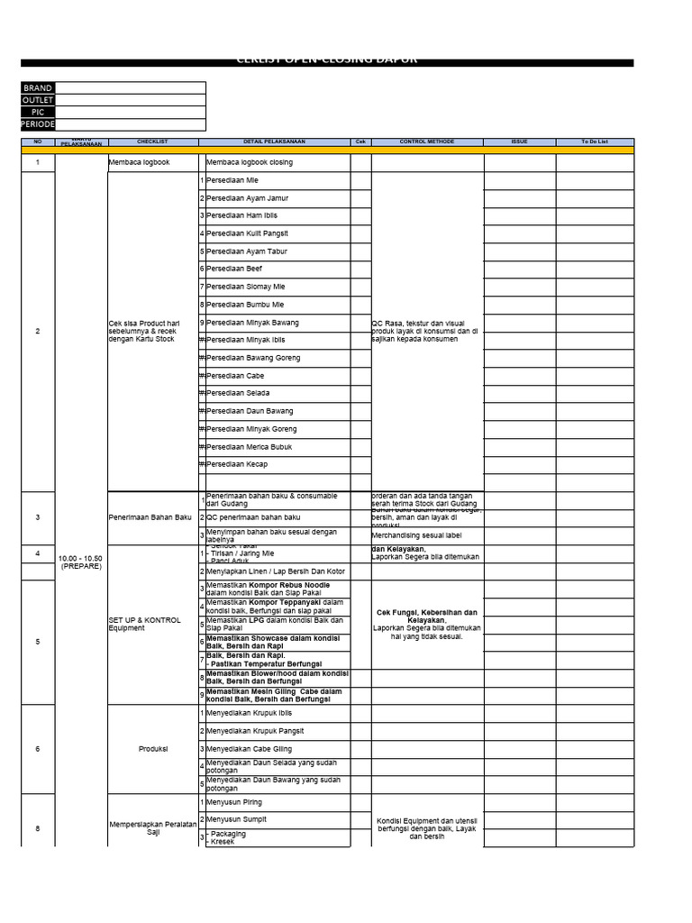 NO PELAKSANAA CHECKLIST DETAIL PELAKSANAAN Cek CONTROL METHODE ISSUE TO DO LIST