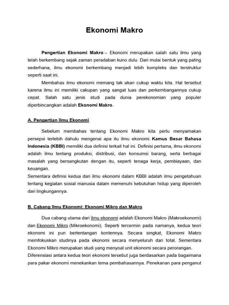 ekonomi ini pun bertentangan kontennya. Secara singkat, Ekonomi Makro