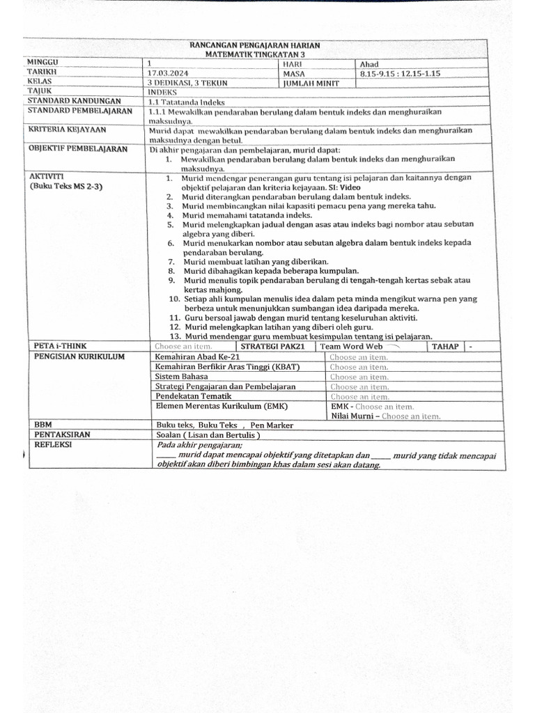 -murid yang tidak mencapaiRANCANGAN PENGAJARAN HARIAN