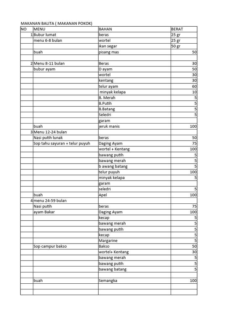 MAKANAN BALITA ( MAKANAN POKOK)