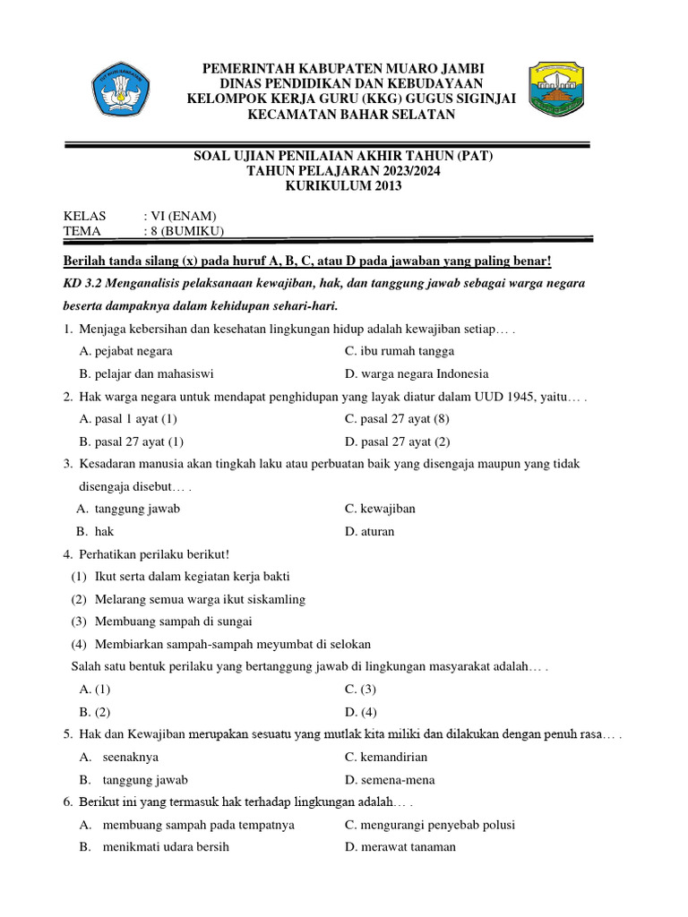 KD 3.2 Menganalisis pelaksanaan kewajiban, hak, dan tanggung jawab sebagai warga