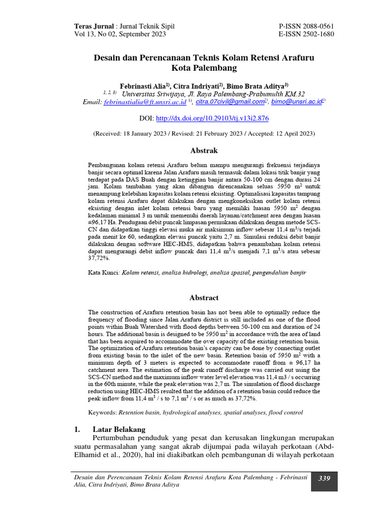 Alia, F., Al-Amin, M.B., N.D. Evaluasi Aspek Teknis Prasarana Kolam Retensi