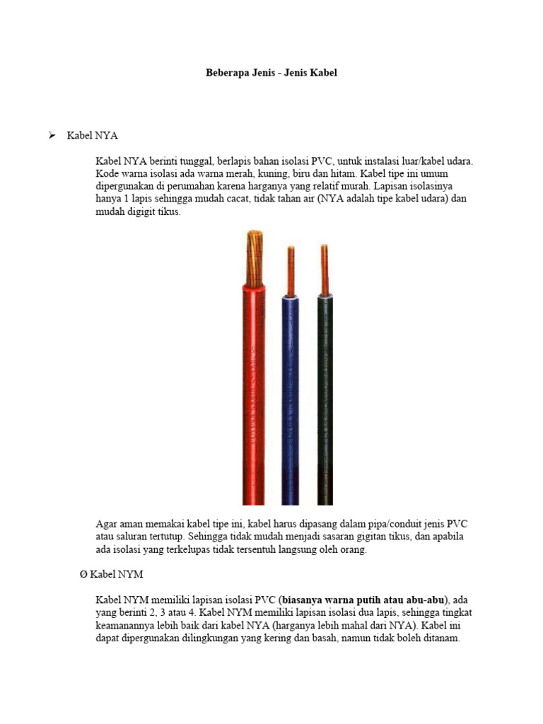 keamanannya lebih baik dari kabel NYA (harganya lebih mahal dari NYA). Kabel ini