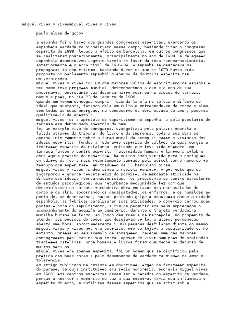 miguel vives foi o ap�stolo do espiritismo na espanha, e pela popula��o de