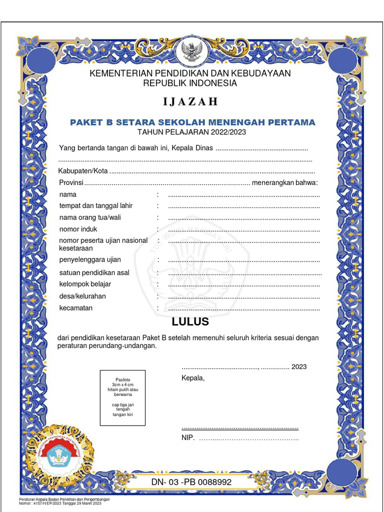 dari pendidikan kesetaraan Paket B setelah memenuhi seluruh kriteria sesuai dengan